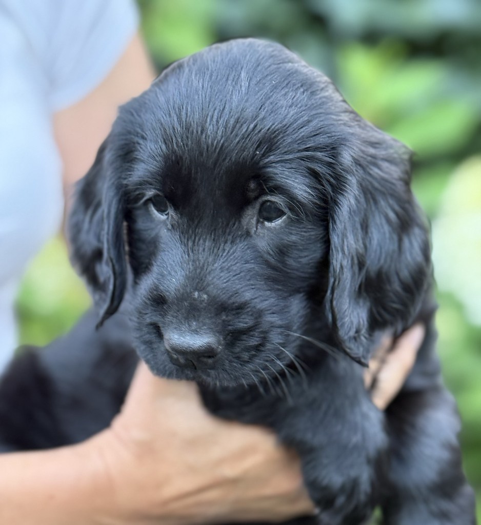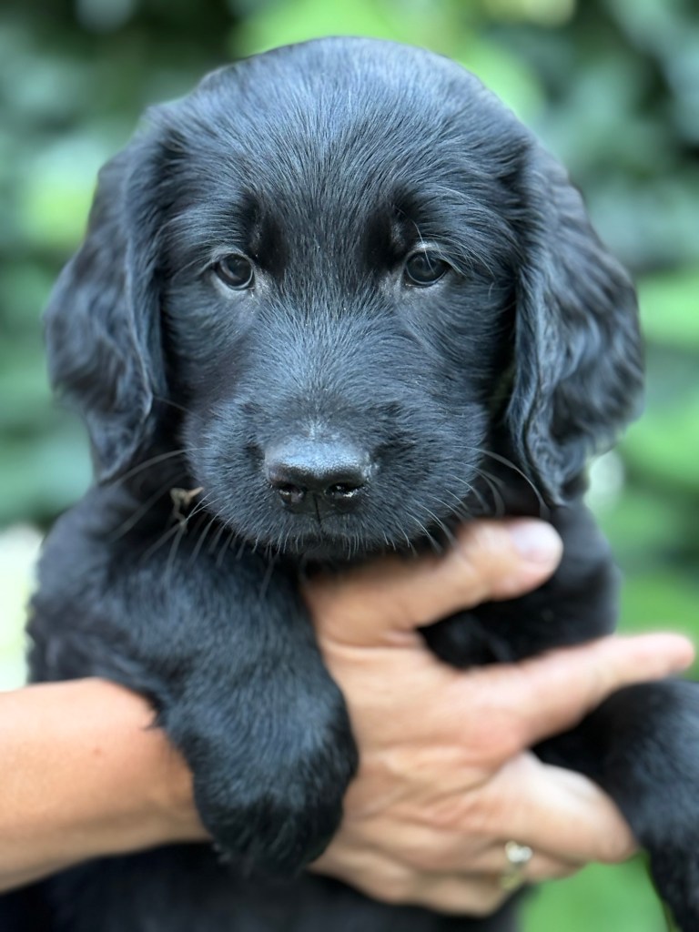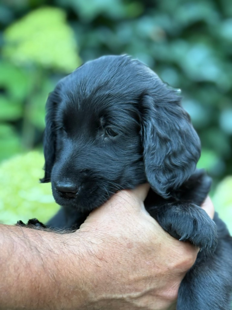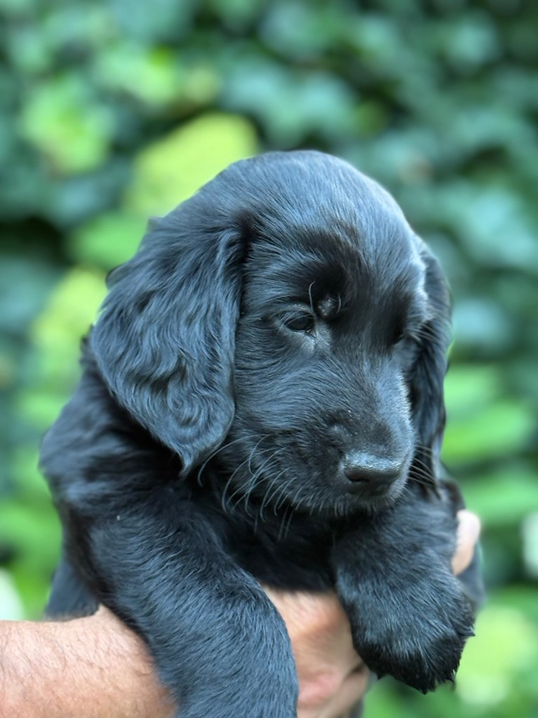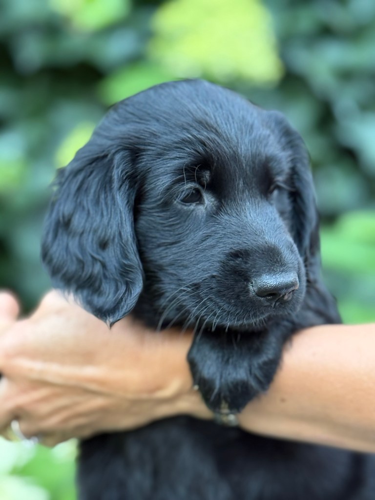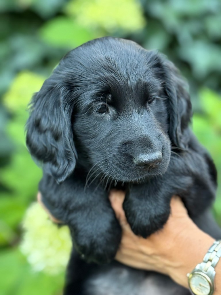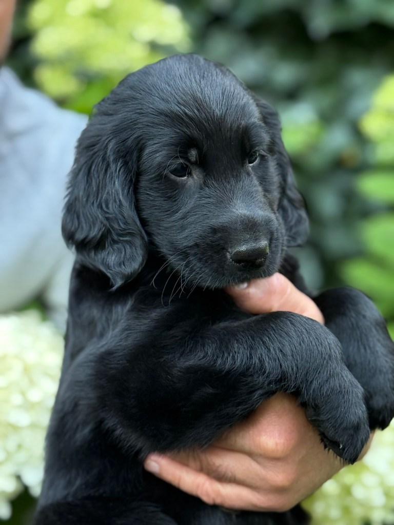 Today all the puppies have had their identification chips implanted and their DNA swaps have been taken by the Dutch kennel club employee in order to prove their parenthood. The puppies were very relaxed and not impressed at all by the handling. They are very cool headed little Flatcoats.