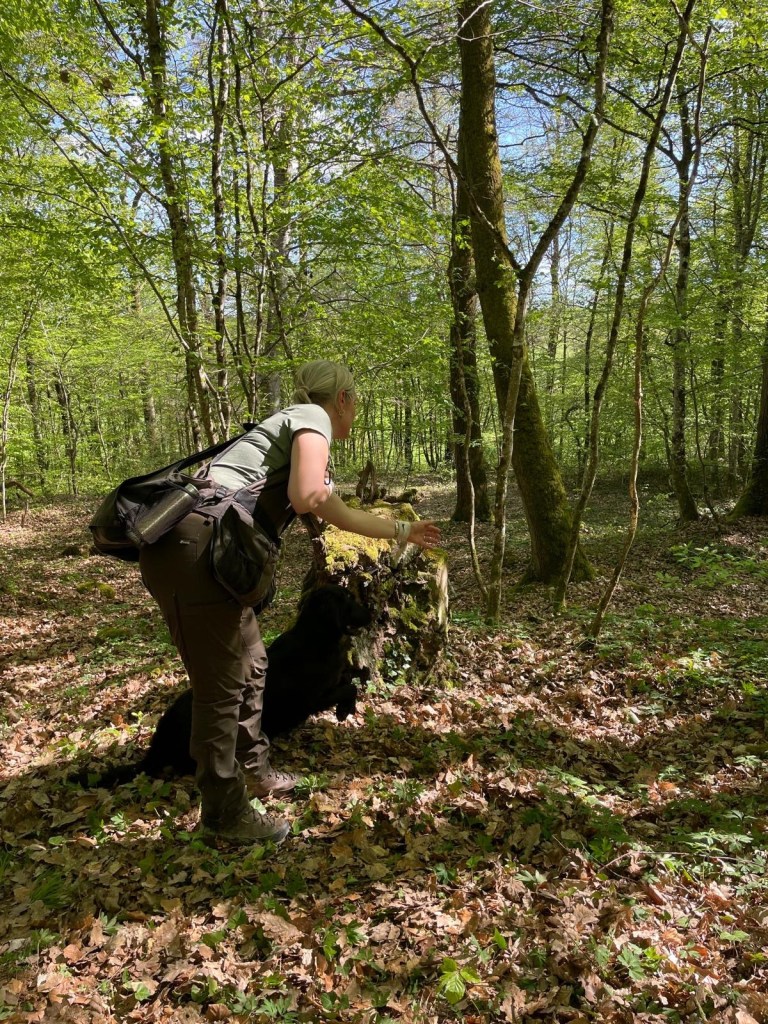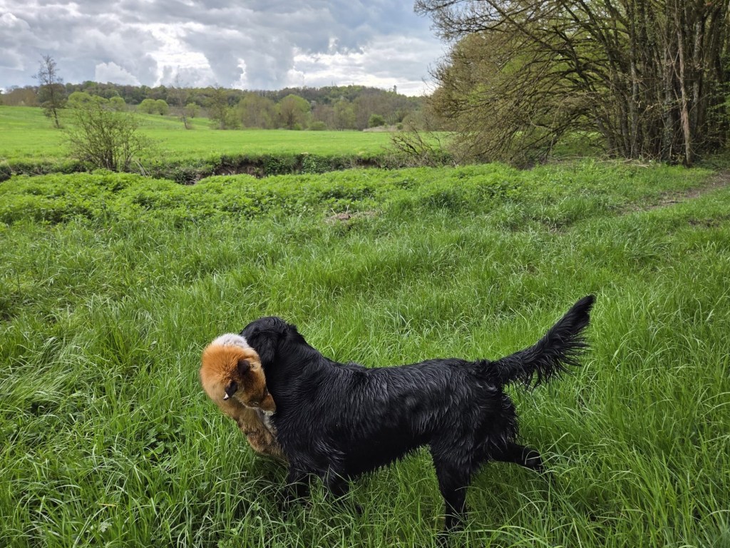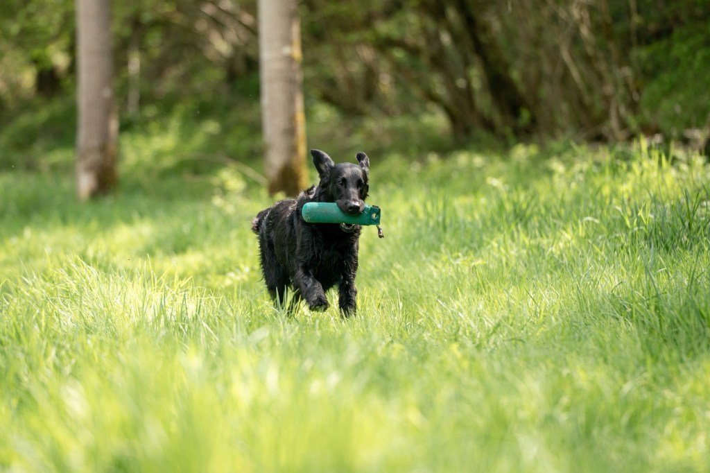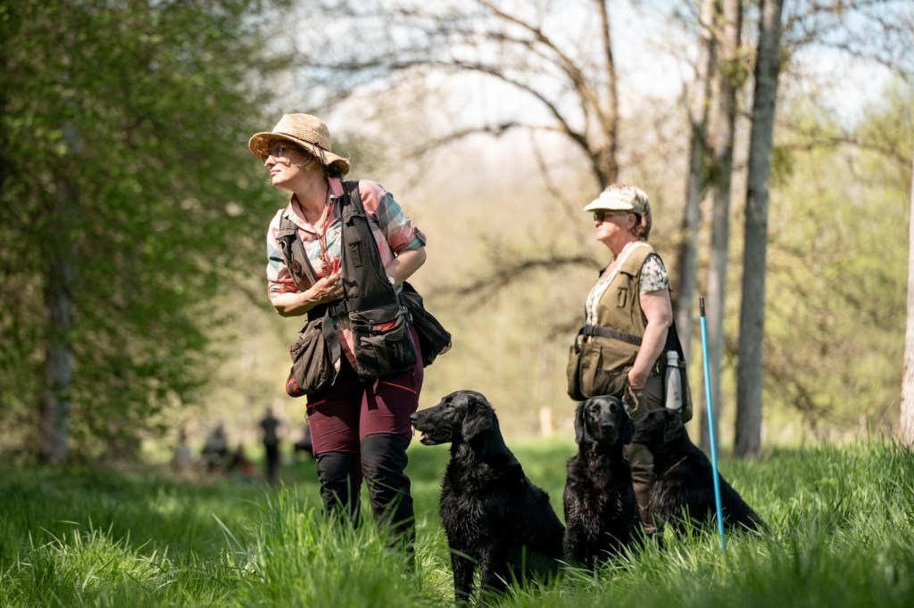 With a lovely group of Flatcoated, Toller, Golden and Labrador retrievers we enjoyed a lovely 3 days of training under the guidance of Rob Dings & Elvira van Burken. Far casts, over waterways with diversions and distractions, blinds in a forest and we were playful with a large foxskin dummy.