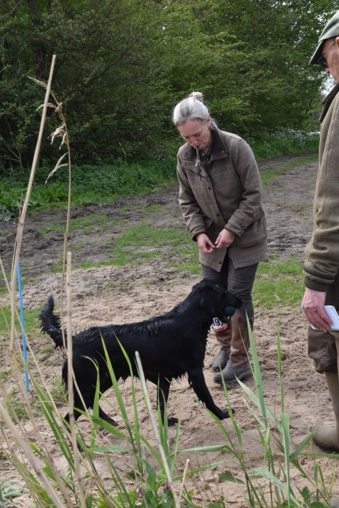 Last weekend (4th & 5th of May) was the weekend Lotte should have had her puppies if the mating had been successful. As she is very affected by the hormones of a pseudo pregnancy (quite common after a mating) we are trying to give her some distraction and a purpose to get her mind off jumping her mother and bothering her brother. In training she is of course rather unfocused at the moment due to hormones so my patience is needed. It was a spur of a moment decision to enter her for the working test – hoping for it to provide us with some distraction of the somewhat emotional date this weekend. That mission has succeeded and Lotte and I had a nice day out working. WFRG had designed some really nice and variated tests and the weather was really nice.