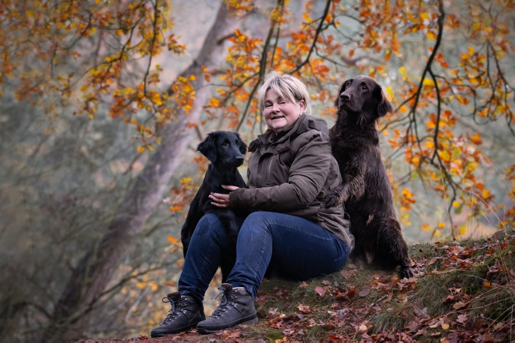 Yvonne & her two flatcoated retrievers Ylva & Kaya