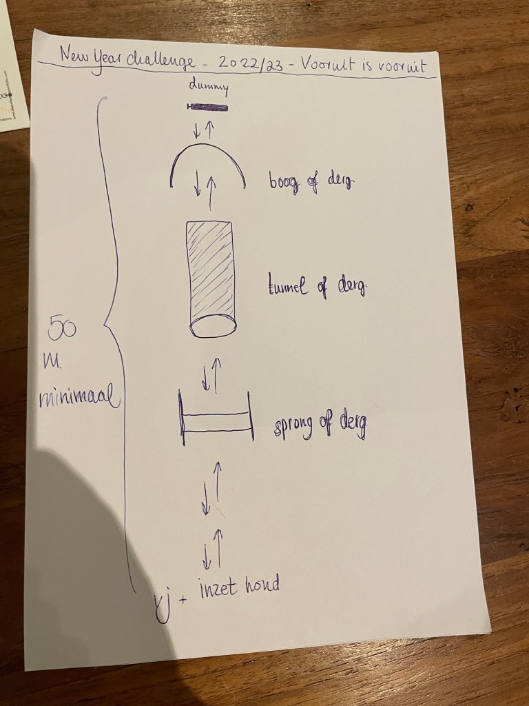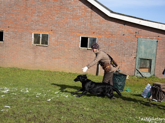 At Christmas time most gundog trainers are enjoying the holidays and I thought it would be a good idea to present a challenge for the youngsters of our Aura litter. On the above photo you can see what the challenge is. A flatcoated retriever is a clever working dog who uses his sight a lot. He will by nature scan the environment and run the easiest and quickest way in and out – avoiding obstacles. Therefore one needs to train this specifically in order to fulfill field trial requirements of going back and forth in a straight line. Today is the final date to send in the videos of the execution – tomorrow we will announce the winner. This year Yvonne Scheltens from Jachthondenschool Kaya will judge the videos. The videos will be shared on our fb page for you to enjoy.