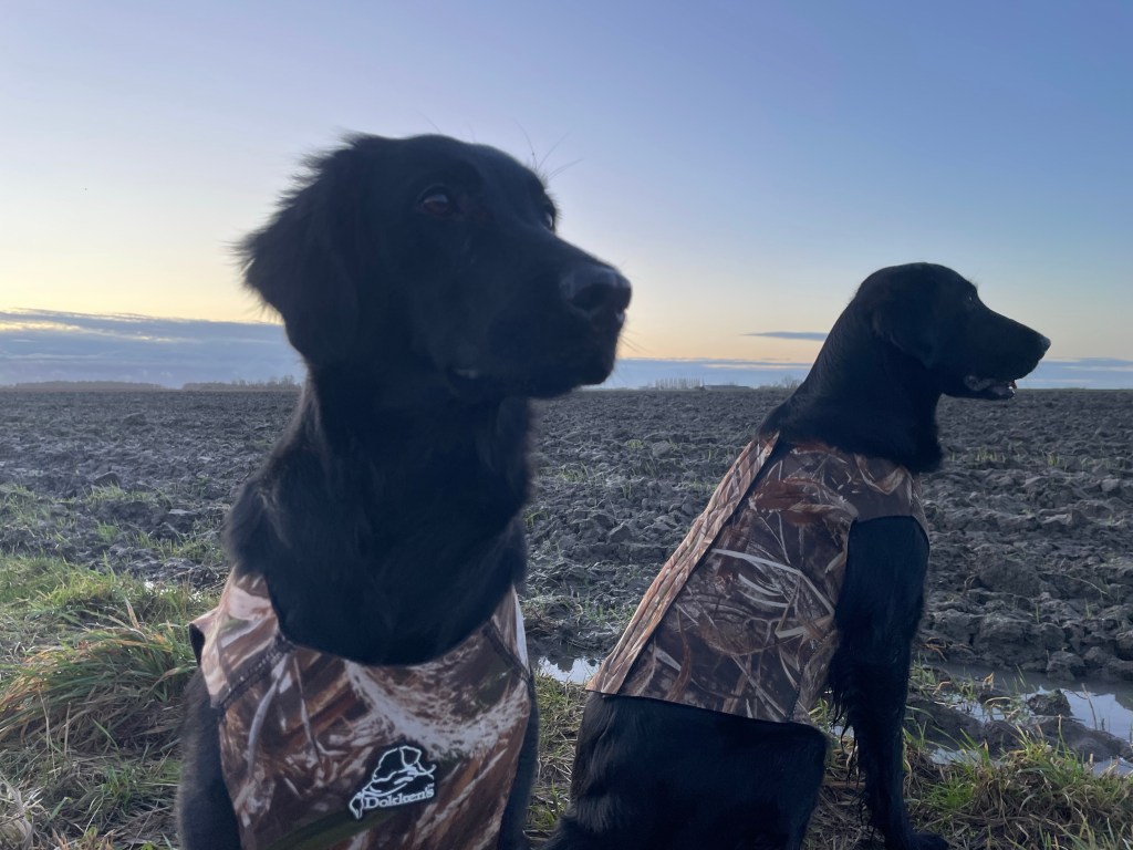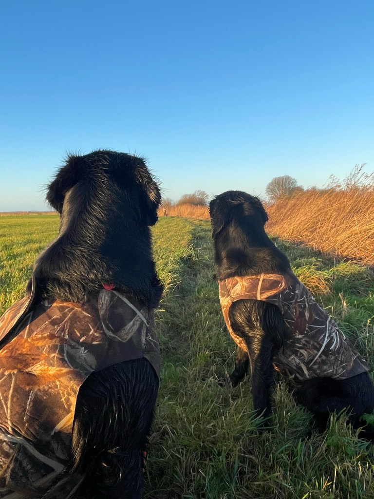 Unfortunately I missed out on one of the big hunting days in December due to a terrible flu. Kindly I was offered a rain check and off me and the girls went on a mild January morning. Lotte has shown a really nice presence when hunting this season and I decided to introduce her to goose hunting. Having Rumi and Lotte at the same time in the field takes some focus as the two ladies are keen and very attentive. Goose hunting is special in the way that one has to be still and out of sight. It requires of the dogs that they can sit and wait for a longer period of time.