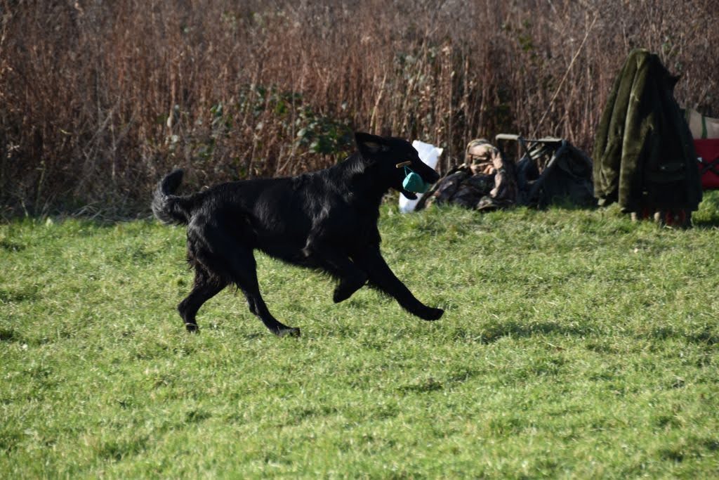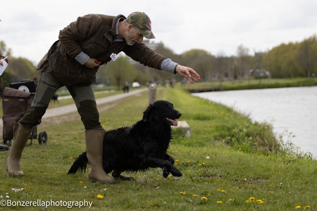 Lotte ready to retrieve 📷 Karine v VlietFlatastic Green Compassion in action 📷 Bonzerella Photography Déroy (Rumi’s brother) in action 📷 Bonzerella Photography