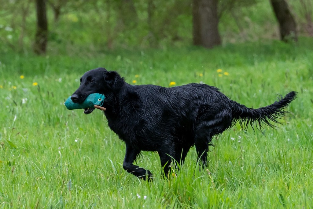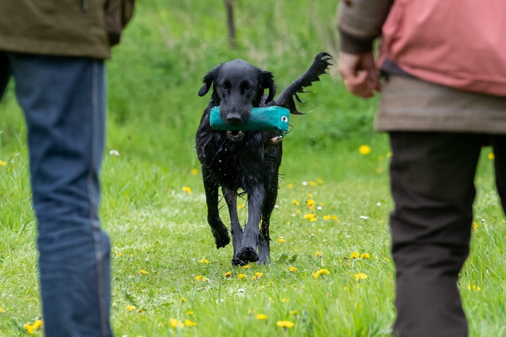 Within the gundog world Flatcoated Retrievers are known as very good hunting dogs solving tasks quickly, independently and with major bird finding abilities. They tend to be less popular as gundog competition dogs compared to other retrievers. One of the reasons for that may be that handlers find them easily distracted (mentally) and a bit strong minded. When reading the breed description of the Dutch hunting association KJV – I must admit a bit to my surprise – the emphasis was put on how challenging they are to train. This is not uncommon to hear.