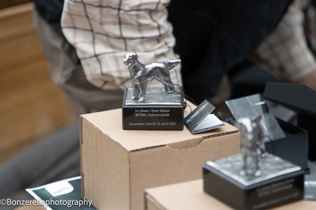 Yesterday was probably the wettest Saturday of the year raining from early morning till nighttime. Strong winds caught us too and I had planned to participate in a working test in Lochem organized by the Golden Retriever Club Nederland. I was the first time Flatastic Red Strength “Lotte” was out in a competition on her own. Up until now I had entered both siblings in exams but for workingtests one can only bring one dog of ownership.